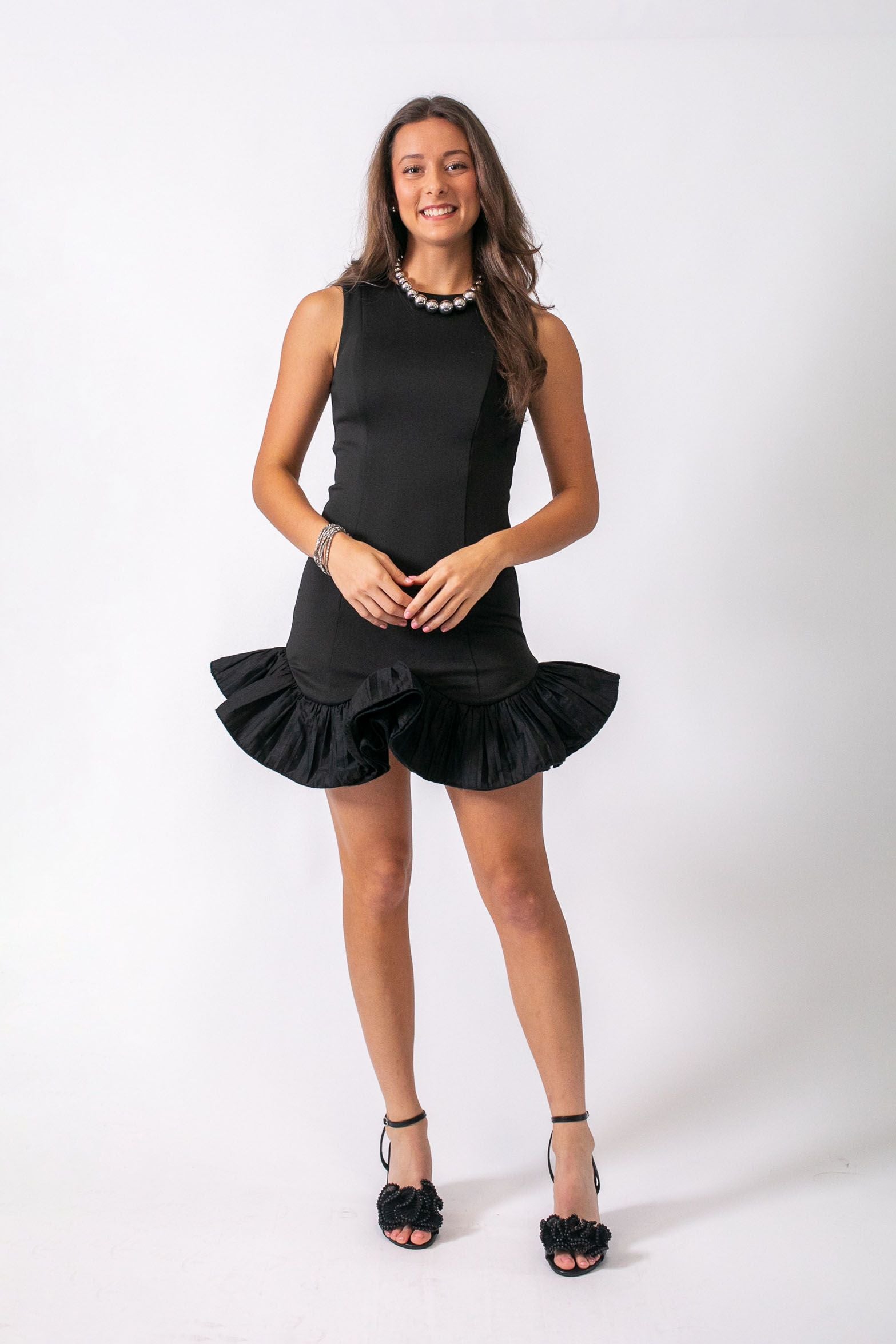 Black/White Flutter Ruffle Hem
